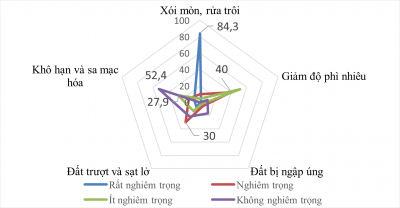 Theo đó, có 5 hình thức thoái hóa chính trên địa bàn xã Mậu Đông trong đó, hình thức xói mòn, rửa trôi được người dân đánh giá là rất nghiêm trọng. Ngoài ra, trên địa bàn xã còn xuất hiện hiện tượng khô hạn và sa mạc hóa, ngập úng, đất trượt và sạt lở, và giảm độ phì nhiêu (Hình 2)